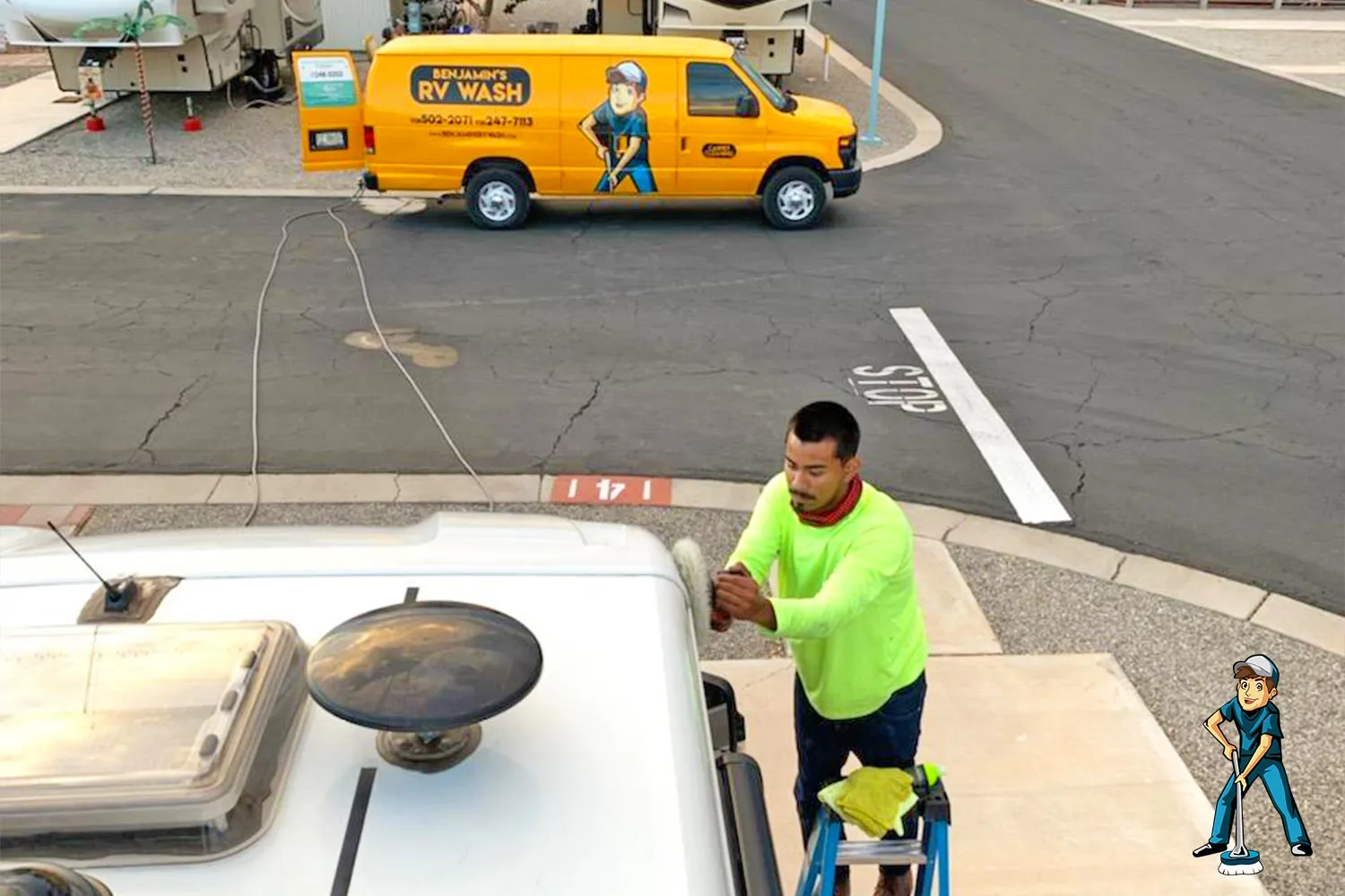 Yuma, Foothills, San Luis, Somerton, Wellton AZ, & Winterhaven Ca. We detail right on-site at your home or RV Park without you having to leave the comfort of your home. Select your RV detailing service package from our coupons, appointment by phone.
