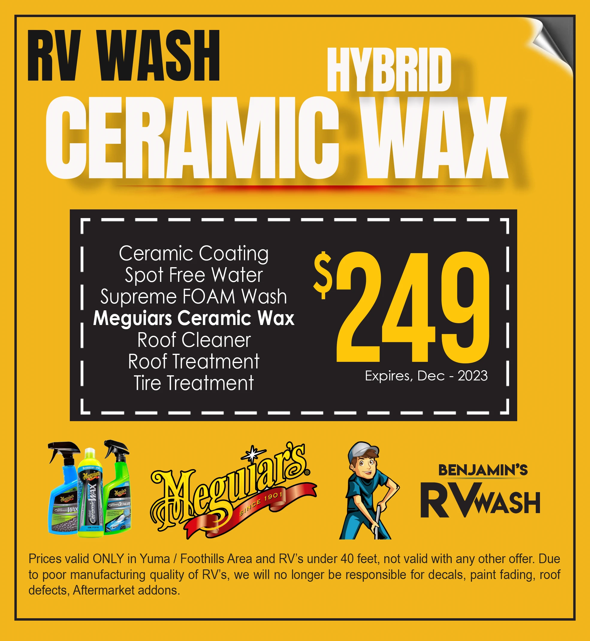 Foam wash includes: Roof wash, bug removal, Meguiars Wash and Heavy Duty Concentraded Wax, complete scrub down, rinse with spot free water, tire treatment (optional), window and chrome dry.